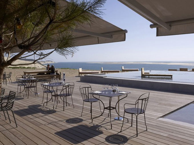 Trata-se de um hotel verdadeiramente extraordinário, situado perto de Bordeaux, em França, mais precisamente em Pyla-Sur-Mer. Construído sobre um antigo abrigo de caça de 1930, este pequeno oásis ergue-se entre o mar, a areia e os pinheiros.